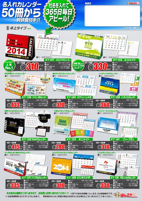 カレンダー印刷☆横浜・港南区・磯子区・金沢区・南区・洋光台・日野・上永谷☆はんこ屋さん21上大岡店 |