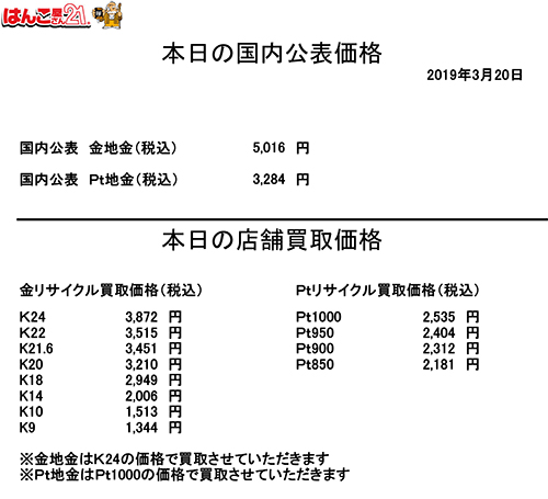 (金プラチナ混合製品は精錬費として、g=200円引かせて頂きます)